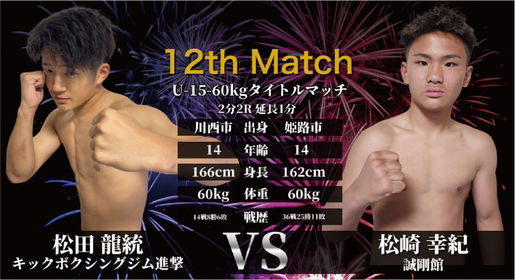 第12試合 松田 龍統【キックボクシングジム進撃】vs 松崎 幸紀【誠剛館】