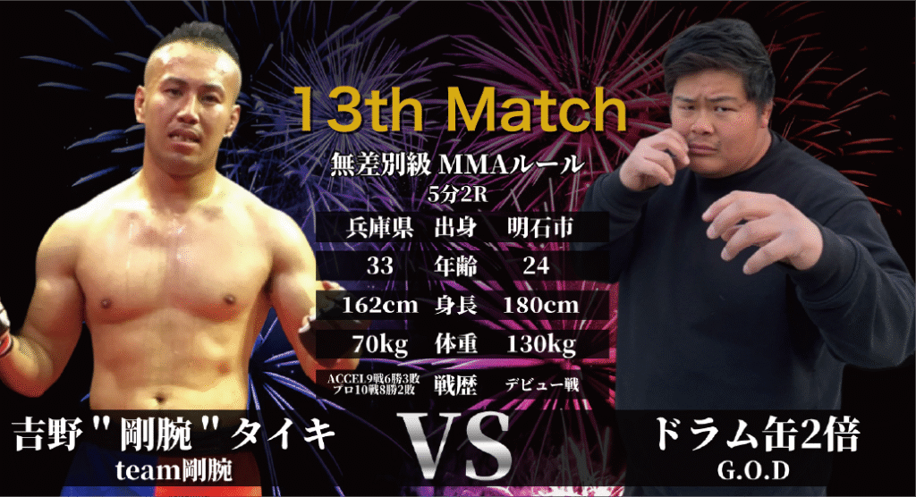 第13試合 吉野”剛腕”タイキ【team剛腕】vs ドラム缶2倍【G.O.D】