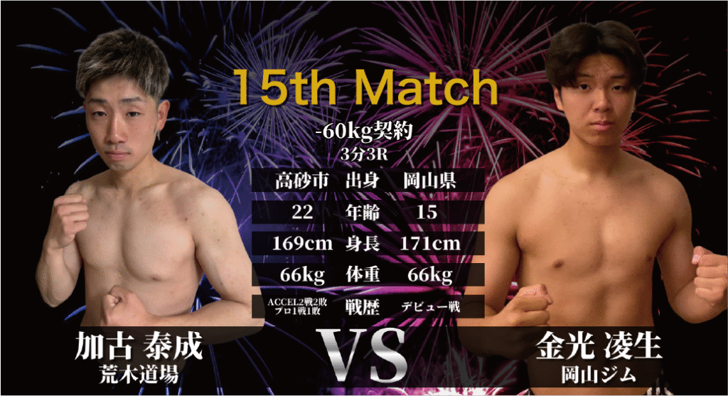 第15試合 加古 泰成【荒木道場】vs 金光 凌生【岡山ジム】
